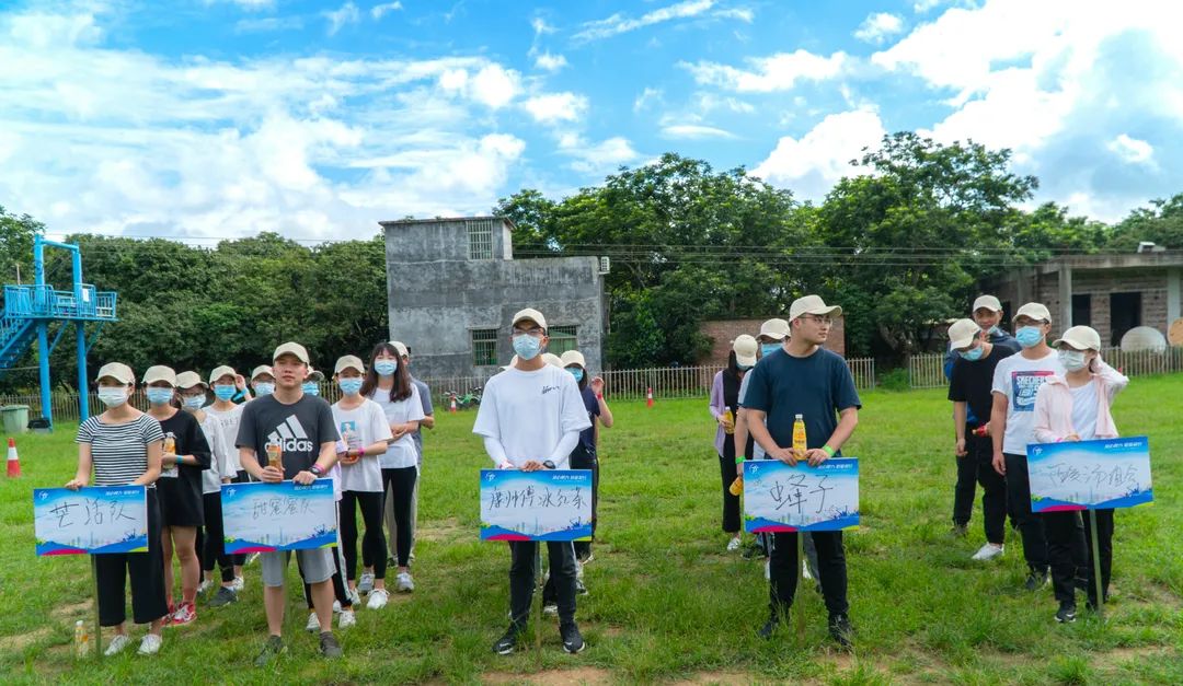 在活动当天,全体新员工们准时集合后一同乘坐大巴前往位于增城区的“倚丰综合基地”。到达基地后,团建指导员按照新员工各自领取的饮料进行分组,选择了同一口味的为一组,共分为五组。各组成员出谋划策小组起名字,并推选出组长,接下来的一系列活动即以小组为单位开展。