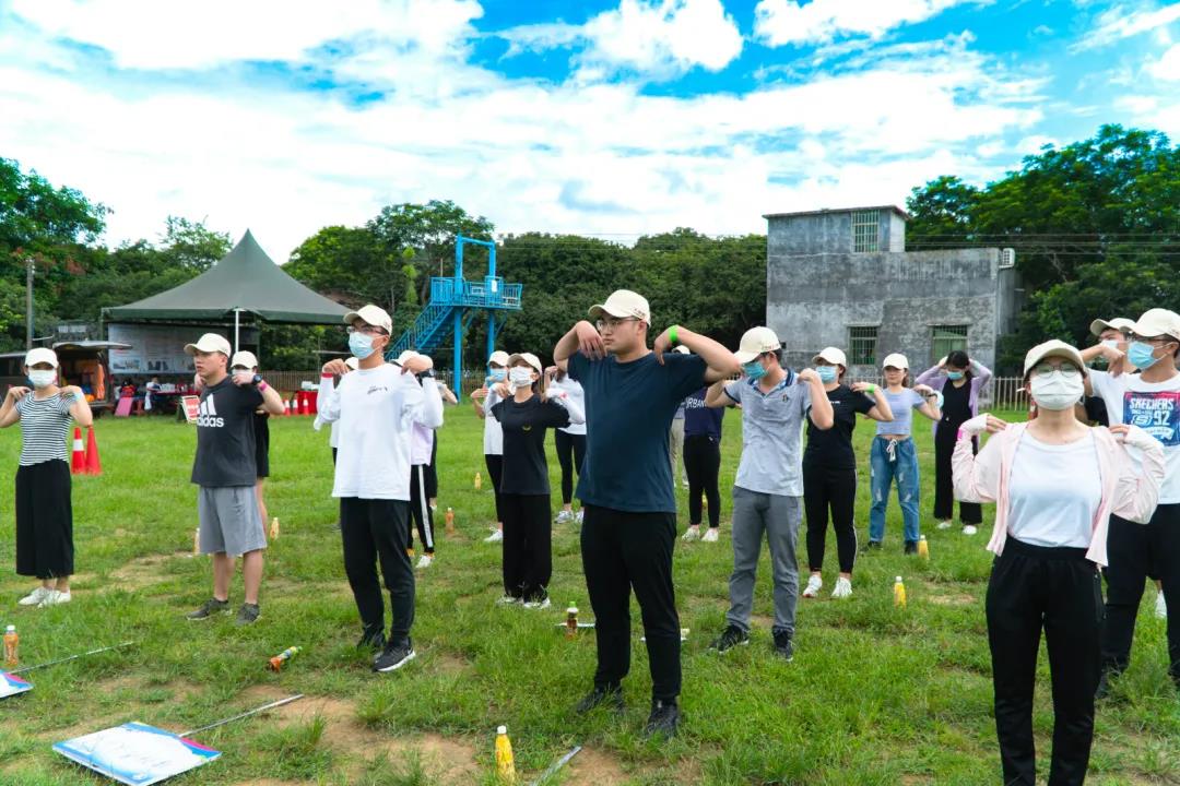 为了让新员工们尽快进入状态,团建主持让各小组大声喊出自己的队名并采访各个队长的“起名”心得。随后便进行了热身准备运动,为接下来的竞技蓄力。