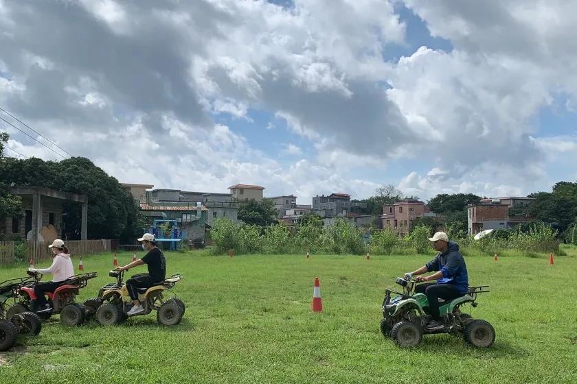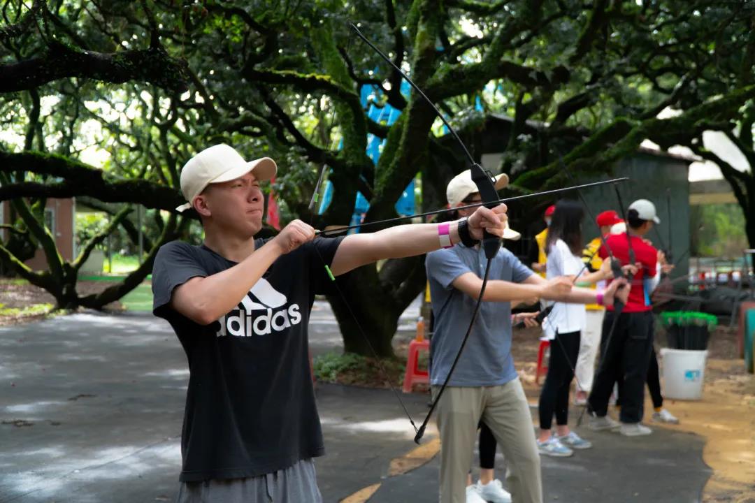 五个小组分别轮流体验电动越野车和射箭项目,体验完毕后队伍之间进行了积分制的比赛。