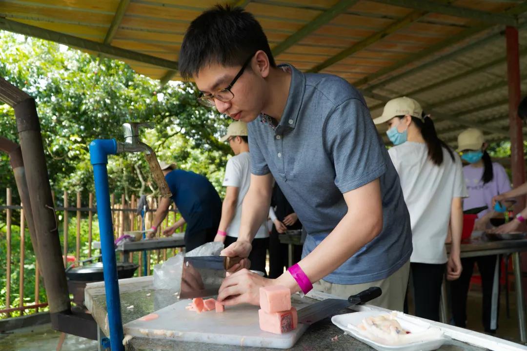 新员工们重新分成了三大小组,各个小组根据基地提供的食材,组内讨论商量菜式、做法。各个小组大显身手,生火、宰鱼、宰鸡,最终通过各个队员的通力合作,做出了一桌色香味俱全的佳肴。
