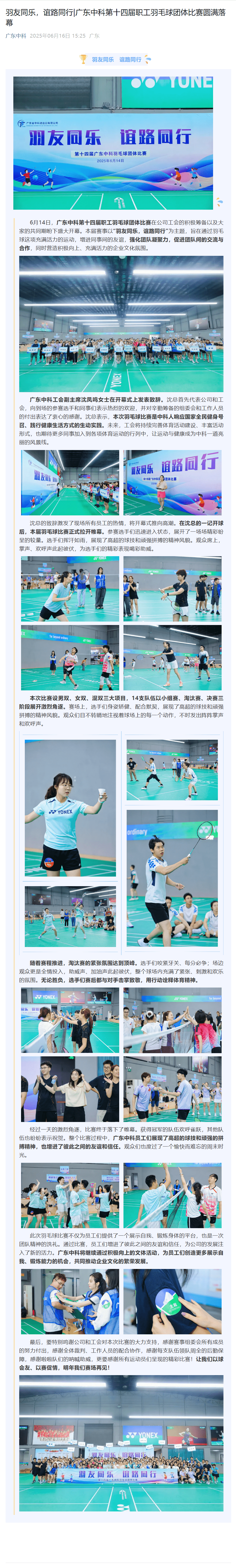 羽友同乐,谊路同行|广东乐鱼手机入口官网-乐鱼(中国) 第十四届职工羽毛球团体比赛圆满落幕